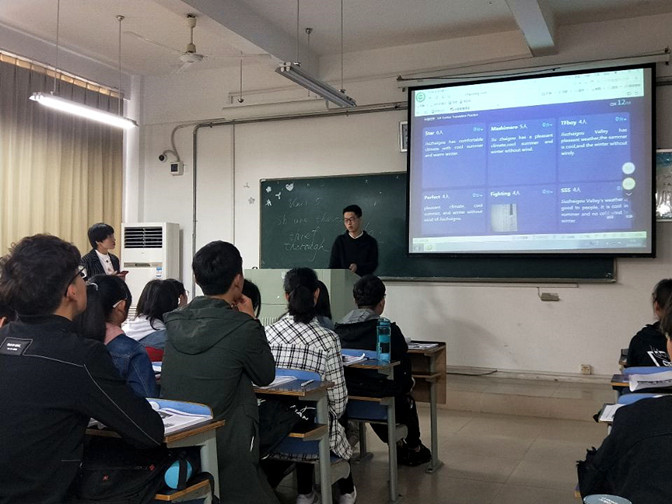 本次公开示范课的授课教师是太阳集团tyc539MACAU公外第二教研室的吴沛瑾。吴老师于2017年开始进行智慧课堂移动教学的实践探索,在2018年安徽省应用型本科高校智慧课堂创新大赛中获得全省一等奖。本次示范课中,吴沛瑾将智慧课堂与传统教学进行探索结合,充分体现信息化技术服务课堂,回归教学本质的思想理念。