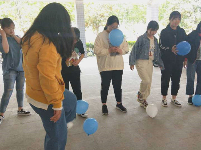 游戏项目总体包括四个部分,“吹爆气球”,“默契大比拼”,“我的心思你来猜”以及“请你跟我这样做”游戏。活动以“吹爆气球”这个解压的小游戏拉开序幕,同学们在气球上写上自己的烦恼,并把气球吹爆,让所有压力和烦恼都随着气球的爆破烟消云散。紧接着进入需要团队齐心协力的“默契大比拼”游戏,同学们以高度的默契,互相合作,顺利地解出一个又一个字谜,在“默契大比拼”之后,紧接着开展“请你跟我这样做”游戏。同学们自行分组,两两对决,略显笨拙却不失可爱的肢体动作更是将活动氛围推到顶峰,同学们的活力和青春面貌在该游戏中展现得淋漓尽致。最后的“你画我猜”完美的在欢声笑语中结束了本次活动。
