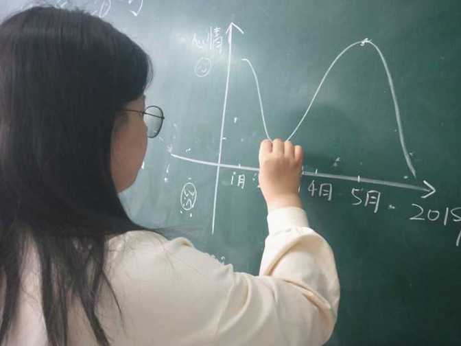 本次活动以“描绘寝室心电图”这个游戏而开展,要求大家回忆并分享过往宿舍生活的点滴。活动规定参与者首先在黑板上建立一个坐标,横轴表示和室友相处的时间长度,纵轴代表自己的心情,描绘出和室友相处中随着时间变化产生的不同心情曲线;随后,参与者在曲线上选择令自己难忘点,并对此进行描述。三位同学主动请缨,大胆画出脑海中的寝室心电图,并分享了自身难忘的经历。来自18翻译班的任梦圆同学第一个分享了她的故事。她表示刚入校时,对陌生环境略有抵触,但是经历了一次“送饭”风波后感受到了室友的温暖,在大家的帮助下,渐渐适应了新环境,满心欢喜与感动。同班级的潘欣玥同学也在分享她们宿舍的故事,虽然在彼此的相处中出现了一些小摩擦,但是更多的记忆都关于室友在自己最艰难的时光中给予的关怀和帮助。同学们看着黑板上三幅错落有致的曲线图,听着寝室同伴分享的趣味横生的故事,温馨和感动不言而喻。