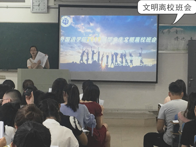 文明离校班会:分专业、分班召开毕业生文明离校班会,辅导员杨小云向全体毕业生发出“将文明留给母校、将感激留给老师、将信心留给自己”的倡议,希望广大毕业生秉承“笃学 重行 修德 立才”的校训,惜念在太阳成集团tyc539四年求学的点点滴滴,勇敢迈进社会。