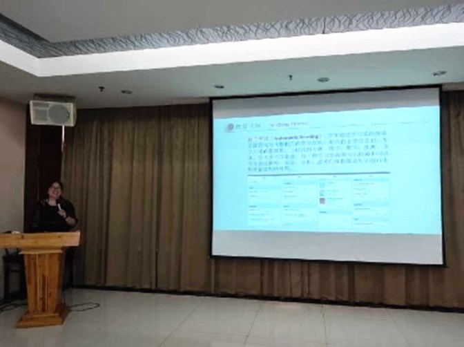 汪静以《新时代·云课堂》为题,从大学英语教学的方向定位、智慧课堂、以赛促教、以研促改和不足之处等方面介绍了公外教学的主要情况。重点介绍了智慧课堂建设的三个成果,一是翻转课堂与移动教学相融合;二是大学英语与专业特色相结合;三是在大学英语教学改革过程中体现过程性评价,考评内容多维化,评价方式多样化;同时,通过组建教学团队,实施过程性评价、开展翻转课堂教学、建设校本网络资源库等渠道合力提升大学英语教学质量。