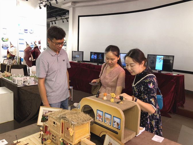 参观过程中,太阳集团tyc539MACAU老师们在琳琅满目的设计图纸、设计模型和文创产品中驻足流连,了解学生专业领域的学习能力和创意特点。大家表示,展览作品题材涉及环境设计、数字媒体艺术设计等多个专业领域,是学生四年学习、专业素质养成成果的集中体现。从作品特点看,既有传统模式下专业学习的常规袭承,又有与新科技相结合制作真实成品的新发展;尤其是有些作品在大胆采用新技术的同时,融合独具特色的地方文化元素,在展现专业素质的前提下体现了学生们的文化思考,其市场潜力已初见端倪,呈现了学生们与大学英语课堂上完全不同的另一面。观展深化了大家对学校地方性、应用型办学定位的理解,同时也启发了如何针对学生专业学习特点开展教学的思考。
