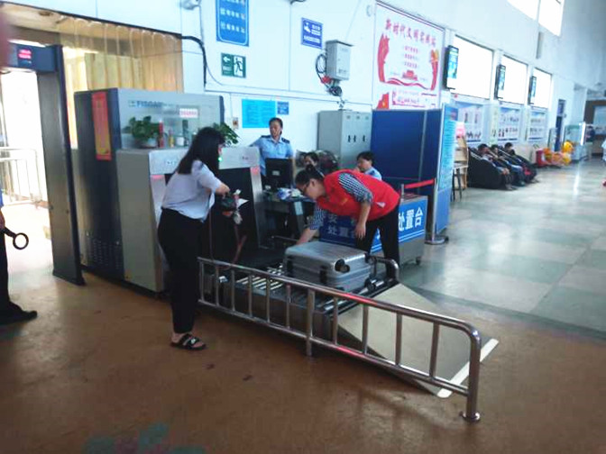 3日上午,团队13人在蚌埠长途汽车站负责人的带领下了解了汽车站分布以及各个区域的作用,掌握了如何处理乘客常见问题的方法,学习了各个岗位的职责。在短暂的休息后,队员们接受了任务安排,同学们迅速在各个岗位,各司其职。售票厅的同学帮助旅客操作自助取票机,减轻窗口工作人员的工作任务,并将旅客指引到候车厅;检票口的同学则提醒乘客们进站前需要准备的证件,以及维持秩序;安检口的同学则帮助行动不便的旅客搬运行李;找不到正确检票口的旅客,则由候车厅的同学进行引导。