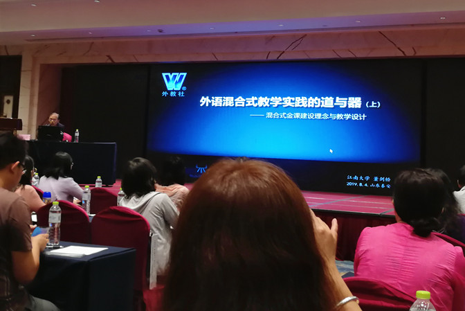 本次论坛由江南大学董剑桥的主题讲座“外语混合式教学实践的道与器”拉开帷幕。董教授以道器为比喻,分享了他关于混合式金课建设理念与教学设计的哲学思考与实践经验。 董教授从教育部“金课”文件的理念和标准出发,详细阐释了“外语金课慕课”的选题定位、需求分析、课程内容、组织原则、目标设计以及知识的提炼和整合,并以英语阅读课为例,介绍了线上线下混合式教学设计的具体实施策略和管理方法。