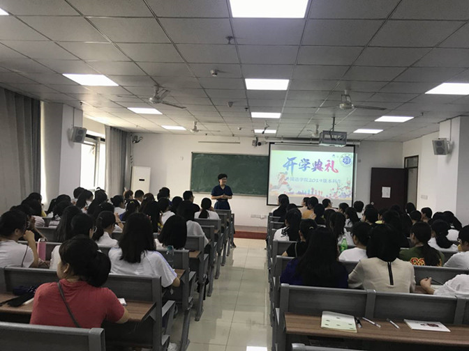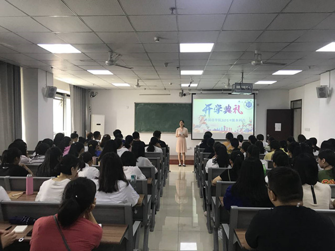 朗朗金秋,丹桂飘香。9月9日上午,太阳集团tyc539MACAU2019级新生开学典礼在综合楼F教学区201室隆重举行。院党总支书记赵睿、院长赵生学、副院长卢洁、团总支副书记王秀梅、辅导员老师杨小云出席此次开学典礼。典礼由学院党总支秘书吴婷婷主持。