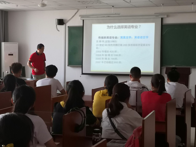 英语专业教研室主任高玉卉老师、翻译专业教研室主任张万年老师图文并茂地分别给英语专业、翻译专业新生介绍了各自专业的人才培养方案,帮助新生充分了解专业情况、发展现状以来未来前景,培养新生浓厚的学习兴趣,增强专业学习的信心和动力。