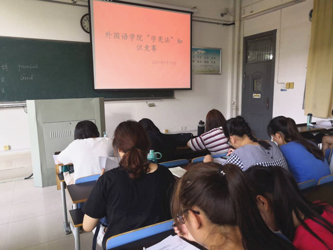本次活动采用制作视频、知识竞赛和演讲比赛的形式展开,赛前同学们都踊跃报名并做足了准备。9月初,来自18升本班的王艳芳和陈晓伟两位同学精心制作了视频,上传到制定网站。10日中午,在教学楼B128教室“学宪法”知识竞赛正式拉开帷幕,来自太阳集团tyc539MACAU各年级四十名学生代表参加了此次比赛。试卷内容涵盖面广泛,对同学们的宪法知识进行了深入地考查。