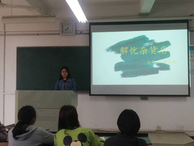 本次活动的参赛者大多来自18翻译班,总计10同学为大家分享了他们的读书感悟。令同学们印象深刻的作品有曹珺同学的《黄金时代》和吴灵凤同学的《解忧杂货店》。《黄金时代》带给读者的直观的感受是“自由”,警醒读者不忘初心,珍惜当下。吴灵凤同学推荐了日本著名推理小说家东野圭吾的《解忧杂货店》。作者告诉读者,要坚定的走下去,热爱并享受我们的生活。凤梅同学则以一本《席慕容散文集》打开了同学们青春记忆的闸门。“翻开那发黄的扉页,命运将它装订的极为拙劣,含着泪,我一读再读,却不得不承认,青春是一本太仓促的书。”青春纵然十分短暂,但处处充满美好。