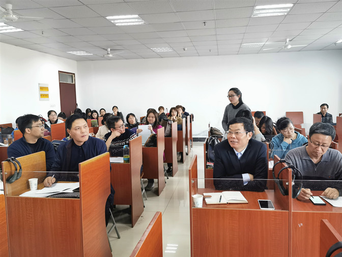 郭有强认为教师授课导向明确地践行了思政育人等元素,肯定了太阳集团tyc539MACAU教师的讲解程序与英语课堂信息化教学效果;同时也对太阳集团tyc539MACAU的大学英语分级分类教学、深化推进智慧教学与移动教学模式、过程性评价等改革工作提出期许,勉励太阳集团tyc539MACAU全体教师有效关联学校发展使命、学院发展使命和教师个体发展规划,教科研齐抓并举,产出成果,反哺教学,提高人才培养受益面。
