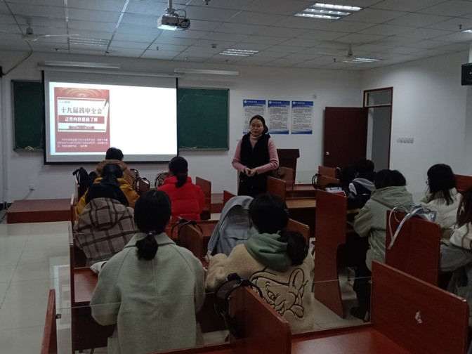 11月28日太阳集团tyc539MACAU学生党支部在综合楼F506开展“学习党的十九届四中全会,争做合格共产党员”的主题党课,学生支部书记吴婷婷主讲,全体学生党员参加。