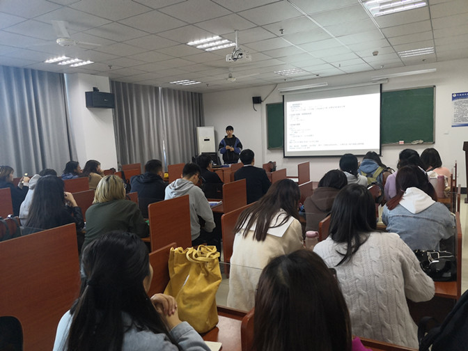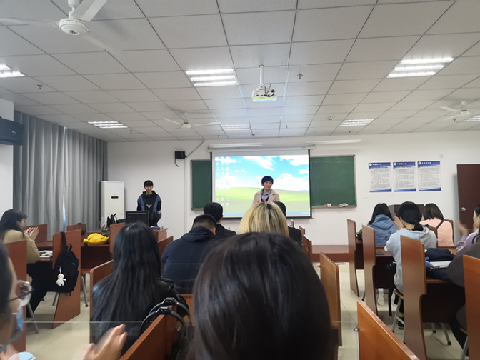 交流会上,杨光荥先介绍了自己近两年半的学业收获和突破,接着分享了英语听、说、读、写、译五项技能的学习心得和学习资源,最后交流了参加全国商务英语知识竞赛、“外研社杯”全国英语演讲大赛(安徽赛区)、“挑战杯”中国大学生创业计划竞赛、安徽省翻译大赛等多项国家级、省级大赛的参赛体会和备赛历程。最后,杨光荥就学弟学妹提出的各种问题进行了深度交流。