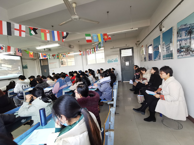 12月4日上午我校太阳集团tyc539MACAU与安徽科技学院太阳集团tyc539MACAU公外第二教研室进行教研交流研讨活动。活动中科技学院公外第二教研室曹淑娅主任一行13人听取了我校公外第二教研室吴沛瑾老师的公开示范课,两校教师进行公开课评议,并就大学英语教学改革进行深入交流。