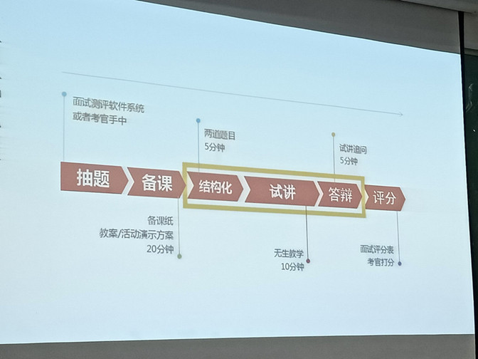 赵生学介绍了中小学教师资格证面试的一般流程,包括抽题、备课、结构化、试讲、答辩、评分这六个环节,明确了教师资格证面试的备考入手点,随后他又对每个环节的注意事项展开阐述,从教案设计、教学过程、面试时如何应对结构化面试的提问以及面试时如何准备试讲这四个方面深入浅出的分享了他的方法与技巧,同时为加深同学们的理解,他用历年真题举例,在他的分析与同学们的讨论中得出合理的答案。最后赵生学希望同学们平时加强英语听、说、读、写能力的提升,同时利用一切场景对所学知识进行应用,提升自身教育教学能力,并祝愿同学们在面试中取得满意的成绩。整场讲座持续两个小时,内容丰富,实用性强,同学们积极思考、参与讨论,活动圆满完成。