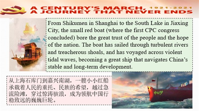 党课从一艘小小的“红船”如何成为领航中国行稳致远的巍巍巨轮谈起,回顾了我们党的百年历史,就是一部党与人民心连心、同呼吸、共命运的历史,指出在庆祝中国共产党成立100周年的重大时刻,在“两个一百年”奋斗目标交汇的关键节点,推动党史学习教育的重大和深远意义,进而引发青年学生深刻领悟中国共产党为什么能、马克思主义为什么行、中国特色社会主义为什么好等道理。党课以新时代前进道路上我们要大力发扬“三牛”精神结尾,鼓励在座的大学生们树立远大理想、热爱伟大祖国、担当时代责任、提高专业素养、练就过硬本领,发扬为民服务的孺子牛、创新发展的拓荒牛和艰苦奋斗的老黄牛精神,努力成为对社会有用的人。