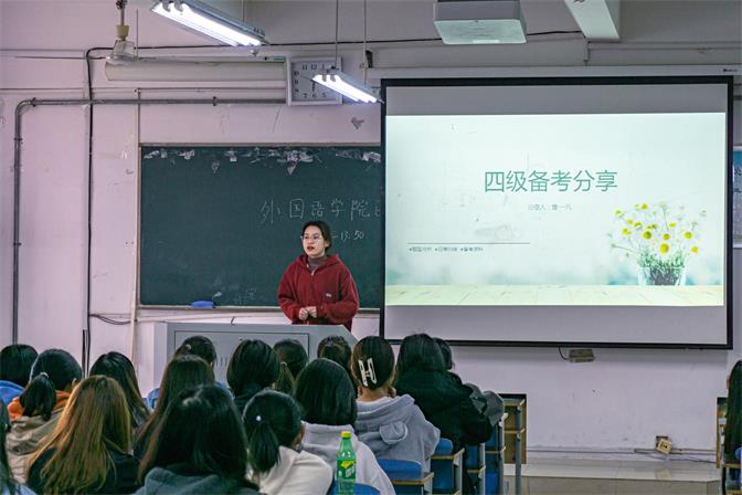 为强化学生英语学习意识,明确大学英语四、六级考试重点,掌握考试复习技巧,4月7日,太阳集团tyc539MACAU邀请在2019年大学英语四、六级考试中取得优异成绩的曹珺、曹一凡、张辰昕、吉鸿禹同学,分别在教学楼B209和B213进行了大学英语四级、六级考试经验交流会,为备考同学作经验分享。