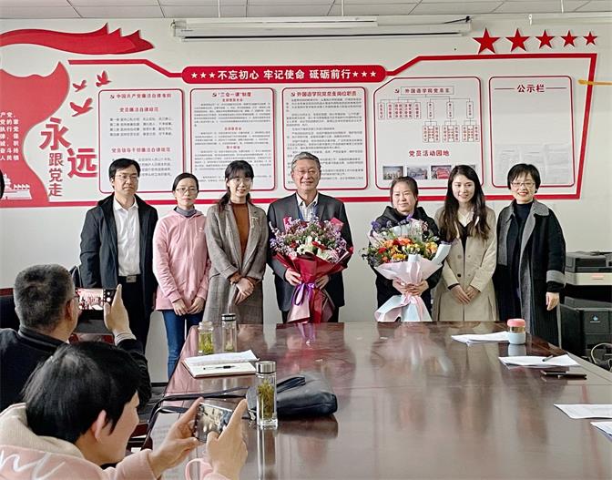 欢送会上,学院党政领导赵睿和赵生学深情回顾了两位教师的工作经历,对两位老师为学院的建设与发展所付出的辛勤劳动表示衷心的感谢,希望他们一如既往的关心与支持学院的建设发展,祝愿他们身体健康,揭开退休生活幸福新里程;分工会主席杨小云致欢送辞,对两位老师的师德、业绩给予高度评价。会议室里情意浓浓,教师们纷纷回忆着和朱老师、叶老师共事的点点滴滴。教师代表崔永姐、吴沛瑾、陈剑晖等纷纷为两位老师十年如一日的爱岗敬业、无私奉献以及对青年教师毫无保留地传授教育教学经验致以由衷的赞扬和敬佩。大家共话与两位老师相处的点点滴滴,情到深处泪湿眼眶。朱晓靖和叶敏饱含对教育事业的热爱和对学院的不舍接过青年教师代表郭嵘和卢虹献上的鲜花,与同事们拍下一张又一张珍贵的合影。