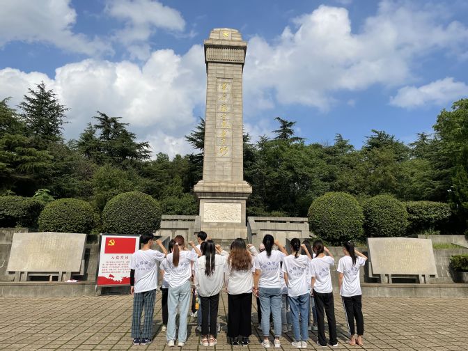 在革命陈列馆,走过一级又一级台阶,同学们在馆内通过参观史料及实物,了解了自辛亥革命至解放前夕时期蚌埠市革命发展的历史,感受到了革命先烈不屈不挠、奋勇向前的爱国主义精神,一个又一个名字深深地印在了大家的心里:辛亥革命时期牺牲的黄花岗七十二烈士中的陈良、宋玉琳;大革命时期牺牲的蚌埠小南山麓的烈士杨兆成;以及李文宗、朱务平、王昭、周启帮烈士等等。同学们不仅对革命先烈们产生了深深敬意,更感慨今天的幸福生活来之不易。出了革命陈列馆,同学们来到 “革命烈士永垂不朽”纪念碑,向纪念碑敬礼、鞠躬表达对革命烈士的哀思。
