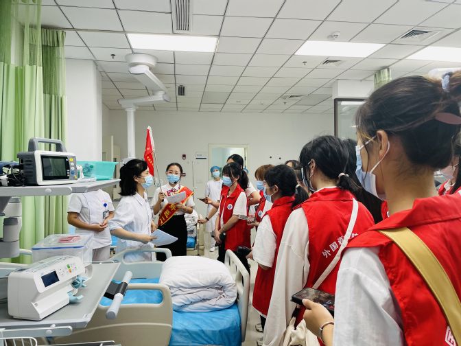 “健康所系性命相托”之“医”:7月8日,实践观察团全体成员来到蚌埠医学院第二附属医院淮上新院区参观调研。在脑卒中ICU、中医药教育基地、体检中心、儿童医疗中心……同学们感受现代化三甲医院的先进医疗设备、体贴的人文关怀和现代化的管理;在成果展示中心,同学们领略从蚌埠医学院走出的院士风采和建树,聆听医院援鄂医疗队的故事,目睹队旗上二附院医护出征武汉金银潭医院的铮铮誓言,同学们更深刻地体会了成果展示厅醒目的习近平总书记的话——“没有全民健康,就没有全面小康”!参观调研中,队员们了解医院“坚持公益性,调动积极性,保证可持续”的发展思路,调研医院深入落实巩固完善基层医疗改革的各项措施,进行卫生监督和医疗体系建设、完善卫生科教和信息保障体系,和加强医药与疾病研究建设的各项工作,体会医院在不断发展的过程中坚守“一切为了人民健康”的初心与使命。同学们说,蚌医二附院的发展是蚌埠市医疗技术发展的缩影,蚌埠医疗技术的发展何尝不是国家医疗技术发展缩影,一个医院折射的是国家完善公共卫生、执法监督、医疗救治三大体系的构建,是覆盖城乡的卫生服务网络和城乡居民就医环境的不断改善,以及人民健康水平的显著提高。