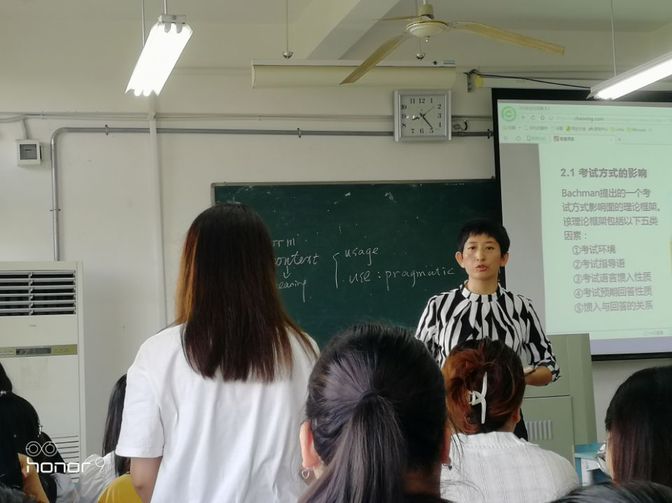 为进一步提高课堂教学质量和集体研课水平,按照学期工作计划,英语专业教研室于9月8日组织开展公开观摩课活动。此次公开课由徐善文老师主讲,授课课程为《英语测试学》。校级督导石平、副院长卢洁、太阳集团tyc539MACAU质量监控小组成员及部分英语专业教研室老师参加本次公开课观摩活动。