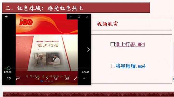 开展专题讲座,以“红色珠城”为切入点,带领同学们“走进”红色蚌埠,认识了解“蚌埠市革命历史陈列馆”、“新四军淮上办事处旧址纪念馆”、“孙家圩子渡江作战总前委”等不同阶段红色文化资源,感受红色珠城紧密融合在党带领中国人民不懈奋斗的百年历史进程。通过观看《淮上行署》等“百年回眸,寻访蚌埠红色印记”专题片,分享暑期社会时间“触摸城市红色印记礼赞建党百年”的体会,了解革命英烈的丰功伟绩,营造浓浓的缅怀英烈、守护英烈的氛围。