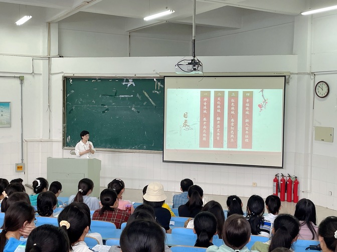 举办“迎国庆,学党史”入学主题教育“感受红色珠城 走进百年征程”专题讲座:总支书记赵睿从“神奇珠城:展开南北地图”、“文化珠城:翻开历史书页”、“红色珠城:感受红色热土”、“幸福珠城:融入百年征程”四个方面,带领2021级新生认识求学的城市,初识独特悠久的地方文化魅力,感受红色文化蕴含的峥嵘岁月;引导同学们要将今天的幸福珠城融入中国共产党领导人民不懈奋斗的百年的征程,深刻认识总书记在“七一”重要讲话概括的“四个伟大成就”、“四个伟大条件”、“四个庄严宣告”的伟大历史意义,在大学生活中汇聚汲纳百川的力量,不断丰壮人生,做建设中国特色社会主义现代化强国生力军。