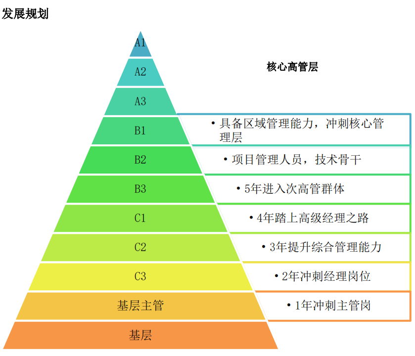 我们为管培生提供定制化培养及双导师辅导的发展路径,管培生可以结合自身情况选择合适的通道,专业和管理通道可同时进行。