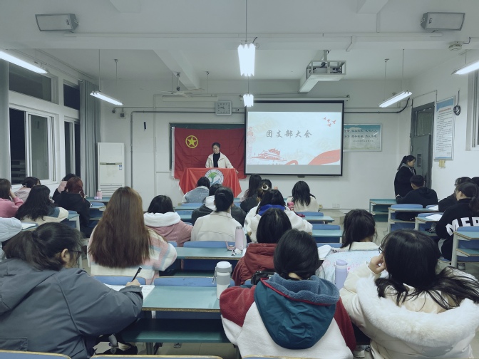 一次团情介绍。团支部书记黄妍带领同学们具体学习团史团情、温习校史校情,学习“三会两制一课”、团员发展细则和团费收缴使用管理规定等,让同学们深入了解共青团发展历程,明确身为团员要遵守的规章制度。