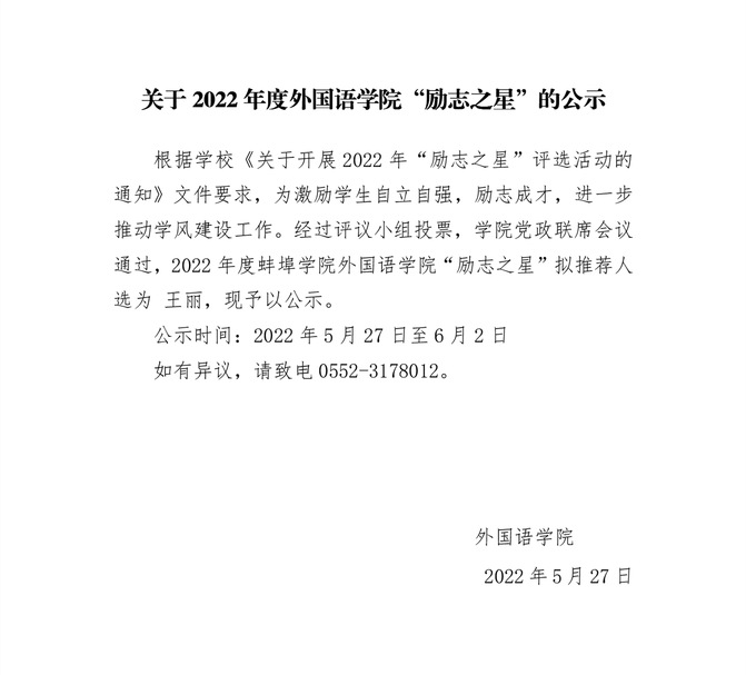 关于2022年度太阳集团tyc539MACAU“励志之星”的公示