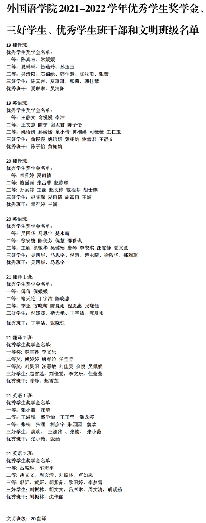 公告-太阳集团tyc539MACAU2021-2022学年优秀学生奖学金,三好学生、优秀学生班干部和文明班级名单