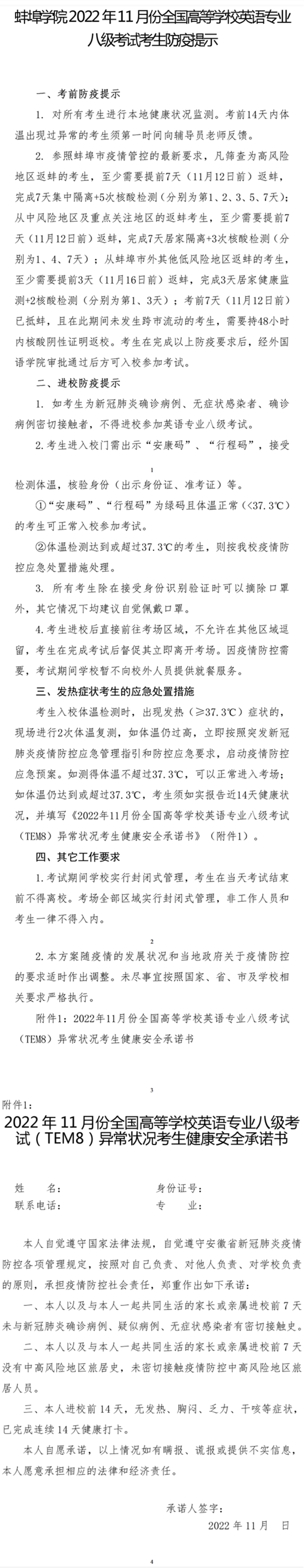 公告-太阳成集团tyc5392022年11月份全国高等学校英语专业八级考试防疫提示