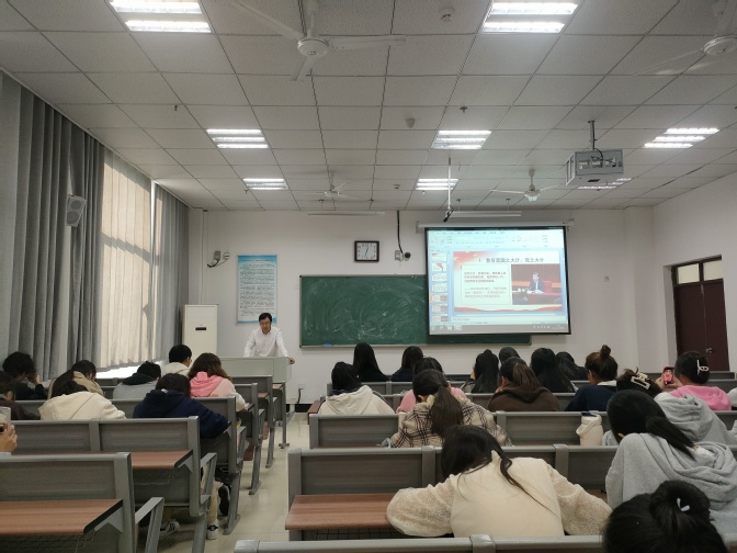 赵生学院长围绕主题,从党对教育的全面领导、把立德树人作为根本任务等九个核心要义对新时代教育进行深入阐述。他从我国教育体系的科学性切入,引导同学们感受、领会中国教育的自信底色与中国特色,接着,从我国农村教育基础设施不断完善、辍学率不断降低、英语教师资源不断丰富等方面向同学们展示了教育不断发展的显著成果。在讲授 “四个自信”时,赵生学院长重点讲述文化自信,并以饮食文化为例,展示如何用中国特色的语言传递中国文化,提高文化软实力。最后,他希望同学们认真学习理论知识的同时,也要培养奉献和吃苦耐劳的精神,提高个人综合素养,做一名能担当民族复兴大任的时代新人。