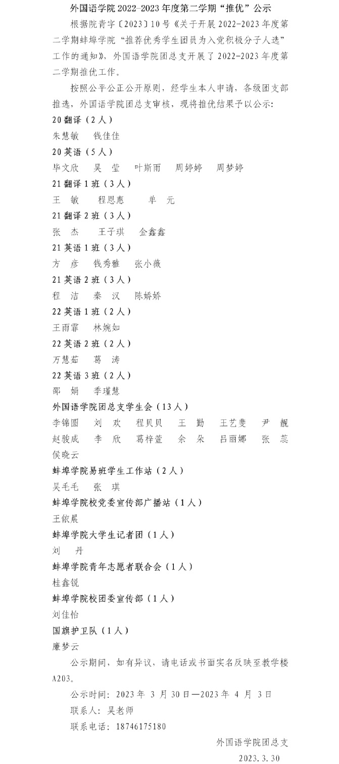 公示-太阳集团tyc539MACAU2022-2023年度第二学期“推优”公示