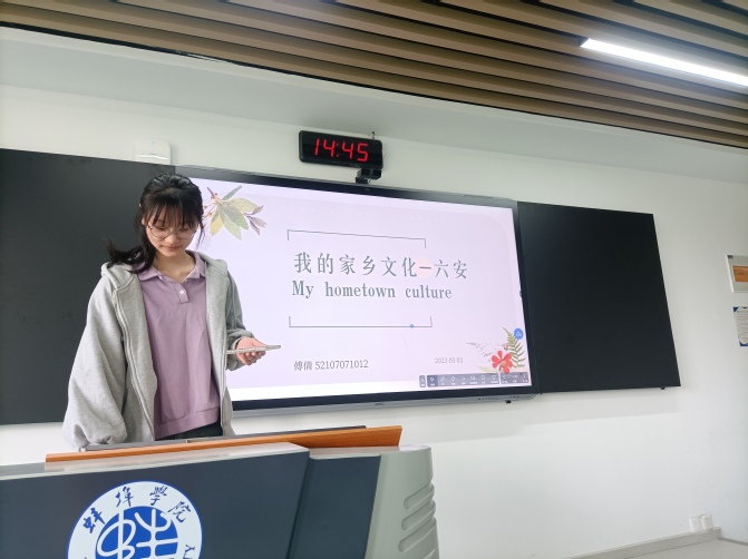 假期结束之后,同学们用英语分享了自己家乡的红色景点,向同学们介绍了江淮地区的红色文化。上台展示环节之后,同学们分组讨论,用英语畅谈作为新时代的青年大学生,将如何投身到祖国建设的时代浪潮之中。