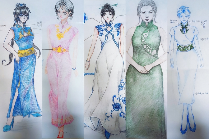 教学示范课后,听课教师认真研讨,挖掘出公开课四个课程思政亮点:一是授课教师结合传统与现代,将中国传统服饰旗袍与2008年北京奥运会的颁奖礼服相结合,引导学生思考中国优秀传统文化在当今的现实应用;二是艺术特色融入翻转课堂,学生手绘2008年北京奥运会的旗袍颁奖礼服:青花瓷、宝蓝、国槐绿、玉脂白、粉红色,体现艺术类大学英语教学“以美育人、以美化人、以美润心、以美培元”的中华美育精神;三是通过身着旗袍的中国女性(宋美龄、谷爱凌、彭丽媛)在国际的魅力以及影响力,彰显中国文化自信以及女性力量,使课程思政得以深化;四是中西方服饰文化的碰撞和融合,体现了“文明互鉴”的思政主题,使课程思政主题得以升华。