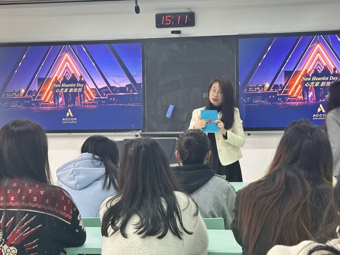 招聘会伊始,上海东方佘山翰悦阁酒店人才文化部负责人Tina通过播放相关视频的方式介绍了酒店的基本情况,着重讲解了学生关注度较高的员工福利待遇情况,并就职业发展与热招职位方面进行了详细讲解,内容包括具体的岗位及数量,以及每个岗位晋升发展的方向、空间和相关条件。招聘现场设置提问互动环节,应聘学生针对招聘岗位与个人职业诉求提出疑问,Tina热情回复了同学们的问题。本次专场为本届毕业生提供了新的就业机会和方向,招聘现场就“为什么要上班”的问题招聘与应聘双向的交流,也让毕业生更进一步认真了职业规划与就业的目标设置的重要性,是最具实践意义的就业观念教育。