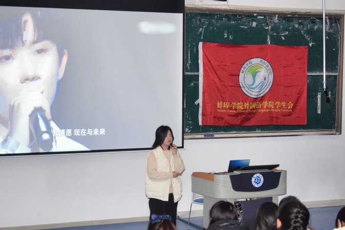 来自学院12个班级的24组选手参加本次大赛,比赛分为独唱与组合两种形式。伴随着22英语3班丁维谊同学以舞蹈《Sexy Back》拉开了本次大赛序幕,首先上场的是来自23英语2班孙智瑜,一首《我期待》让我们回忆起童真的神采;22英语3班贾伯宇演唱的《陪你去流浪》融合人声和口哨,民谣韵味将音乐表达的自然感和现实感逐渐呈现;23英语1班冯苗苗带来的《这世界那么多人》旋律舒缓、质朴动人、表达了对爱的感伤和释然;由23英语2班吴文杰和22英语2班刘宇琦双人演唱的《手写的从前》受到观众的热烈欢迎,台下不时响起阵阵掌声。赛程结束,在同学们的热切期盼下陈剑晖老师演唱英文歌曲,更是使现场气氛推至高潮。