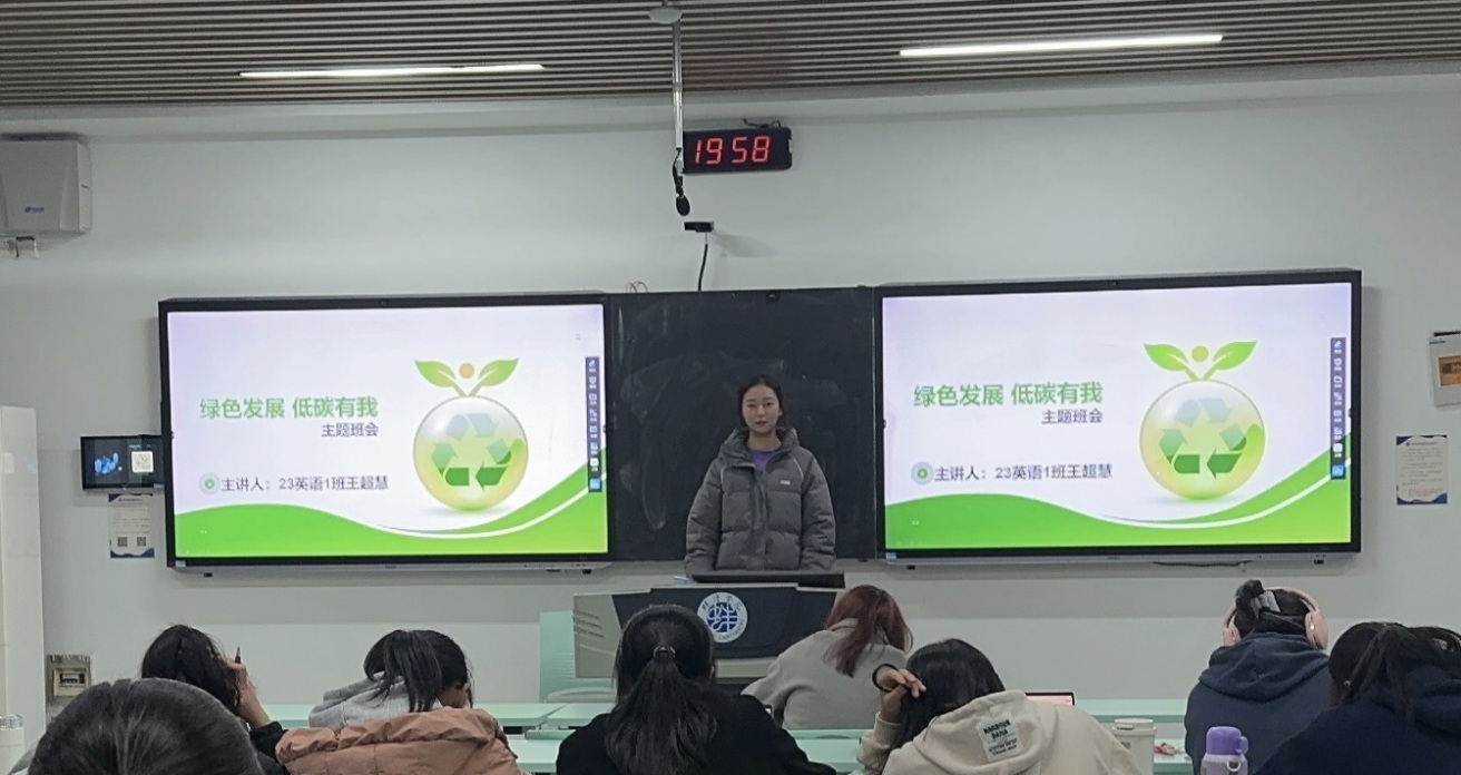 主题班会上,辅导员带领同学们观看绿色发展专题视频,了解国家在绿色发展阶段所做的战略部署,以及积极践行绿色低碳发展的重要意义;班会进行了节水节电教育,展示了校园生活日常“文明餐桌”以及“光盘行动”的案例,号召同学们从我做起,节约每一滴水、每一度电,养成崇尚节约、科学文明的生活方式。最后,班级同学分组讨论,就校园环境保护、美丽宿舍提出自己的建议。