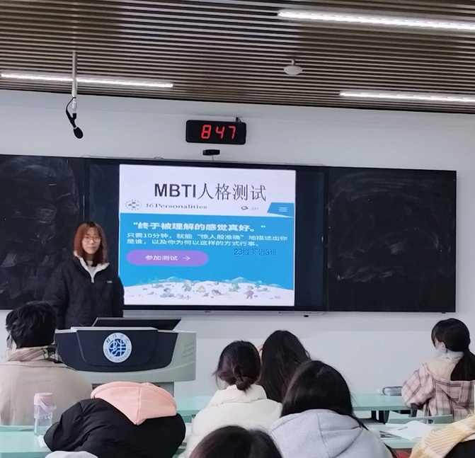 根据测试情况,各班心理委员组织班级同学交流分享自己的测试结果,并对此次活动进行总结,希望此次活动能帮助同学们更清楚地认识自己、完善自我,迈好职业定位和职业规划的第一步。23英语1班心理委员展悦表示“MBTI人格测试可以帮助我们更好地了解自己的思考方式和行为倾向,更好的发展自己,好能够让我们了解到自己的性格的特点,分析自己的优点和不足。”