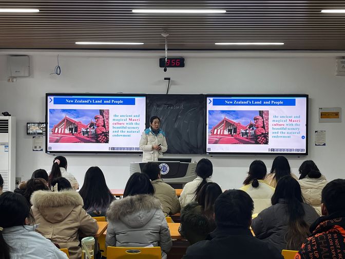 本次教学示范课教授内容为《英语国家社会与文化》中的“New Zealand’s Land and People”,授课对象为22英语1班学生。授课教师采用线上线下深度融合的混合式教学方法,课前通过学习通发布预习任务,要求学生完成平台的相关任务,并在课上通过随堂小测验检验学生课前学习的效果,并根据测验结果适当调整课堂教学设计。本次授课围绕新西兰的环保意识和环保做法为主题,适时引入日本核倾倒事件,中国近年来扎实推进的环保举措及取得的巨大成效,组织展开小组主题讨论。结合新西兰政府和社会各层面对毛利文化的保护和发展,自然引申到作为淮河之畔的蚌埠,花鼓灯、泗州戏、五河民歌等传统文化的传承和外译,是我们外语专业学生可为可做的具体实践。