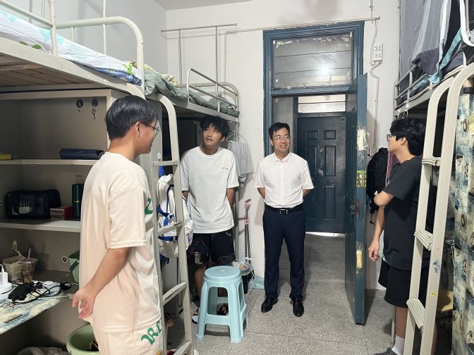 每到一处,老师们与新生们进行热情的交流,新生们纷纷敞开心扉,有的同学表达了对新环境的好奇与憧憬,有的同学则提出了一些关于学习和校园生活的疑问。党委书记赵睿表示,希望同学们相互关爱、相互帮助,在太阳集团tyc539MACAU的大家庭快乐成长;同时,也提醒新生树立安全意识,防范各类诈骗,建设平安寝室、平安校园。太阳集团tyc539MACAU院长赵生学在走访中着重强调了学业规划的重要性,鼓励新生要珍惜大学时光,好好学习,不辜负家长和社会的希望,成为优秀的外院人。党委副书记周颖详细询问新生们的报到、住宿情况,对新环境是否适应等,一一耐心解答同学们的生活疑问,并给予同学们积极适应大学生活的建议和鼓励。