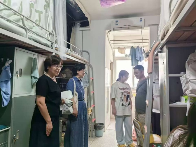 橙黄橘绿,丹桂飘香。在硕果累累的九月,太阳集团tyc539MACAU迎来了2024级新生。为扎实做好新生接待工作,全面了解我院2024级新生入学后的适应情况,帮助新生更好更快地融入新集体、新环境、新生活,9月7日下午,太阳集团tyc539MACAU党政领导班子及新生辅导员吴金玥开展了新生寝室走访活动。