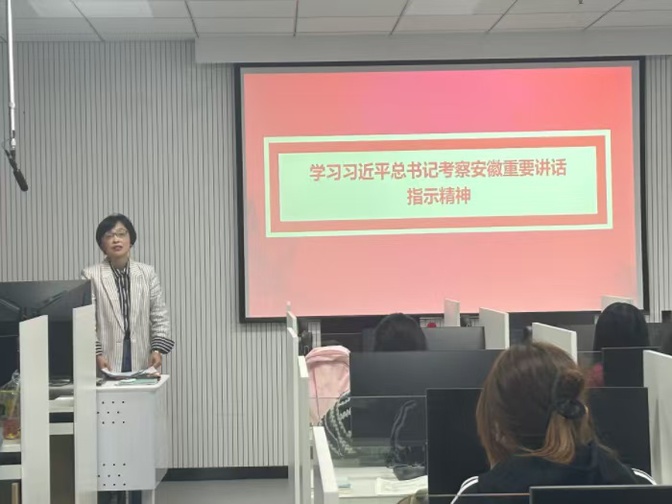 此次理论学习中,赵睿以“习近平总书记三次考察安徽”的时间主线,沿着总书记的足迹,从习近平总书记三次考察安徽走过哪些地方、习近平总书记三次考察安徽的重要指示、新时代美好安徽建设的新航标三个方面展开阐释;引导同学们深入学习思考总书记讲话精神,积极进取,找到各自不断成长的方位,在新时代美好安徽的建设发展中贡献自己的力量。