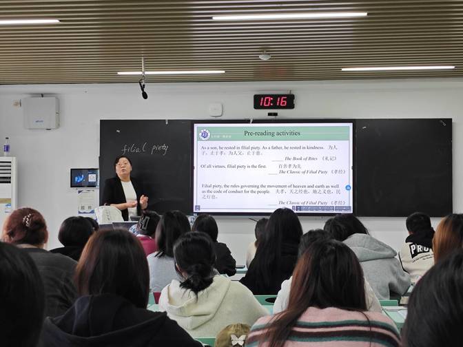 10月29日,太阳集团tyc539MACAU公外第二教研室开展大学英语课程思政公开示范课活动,肖佳教师主讲本次课程。本次公开课课程为《大学英语Ⅰ①》Unit2 Text A课文“A child’s clutter awaits an adult’s return”。 公外第二教研室主任汪静、太阳集团tyc539MACAU质量监控小组成员及部分教师参加了此次公开课听评活动。