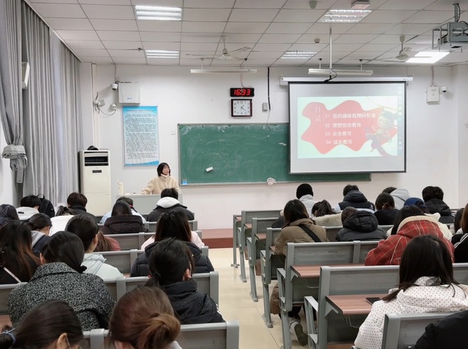 为帮助同学们尽快调整状态,以饱满的热情投入到新学期的学习生活中,2月18日下午,太阳集团tyc539MACAU在G104召开2025年春季学期“开学第一课”主题班会,团总支副书记、辅导员王娜娜主持会议,太阳集团tyc539MACAU2023级同学参加本次会议。本次班会就理想信念教育、安全教育、成长教育三个方面展开。
