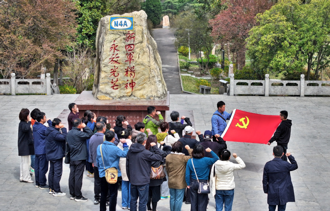 午间,全体党员来到新四军纪念林,沿进林主路拾级而上,37级台阶寓意新四军成立的年份;缓步敬读着一方方镶嵌在两侧石壁上镌刻着反映新四军历次重大战役和重要事件的石碑。行至山岗高处平台,在“新四军精神永放光芒”的主碑下,面对鲜红的党旗,全体党员驻足肃立,重温入党誓词,铮铮誓言响彻林间。随后,大家参观了新四军纪念林陈列馆及淮南烈士事迹陈列馆,通过珍贵的历史文物和影像资料,深刻感悟新四军将士浴血奋战、保家卫国的革命精神以及淮南大地各历史时期革命先烈为党和人民事业前赴后继、奉献一切的豪情壮志与牺牲精神,真切感悟到了信念信仰的力量。