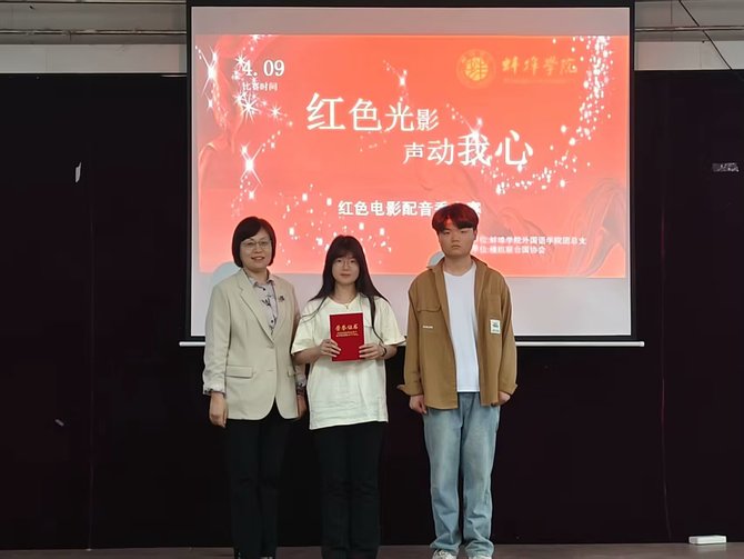 此次配音大赛的成功举办,充分展现了新时代大学生在英语学习和实践领域的卓越实力,红色电影情节再现也更加激发了他们的爱国热情和责任感。那些饱含革命激情的文字,那些闪耀着理想信念光芒的诗篇,通过同学们声情并茂的演绎,化作汩汩清泉,流淌进每个人的心田,让红色基因代代相传,让革命精神永放光芒。(撰稿人:许子涵、王娜娜;编审:王刚;审核:夏春晓)