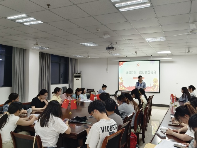 6月9日,太阳集团tyc539MACAU学生党支部在F1114开展“廉洁自律 践行党员使命”廉洁教育专题党课。党课由学院党委副书记周颖主讲,毕业班全体党员和其他学生党员参加了此次学习。