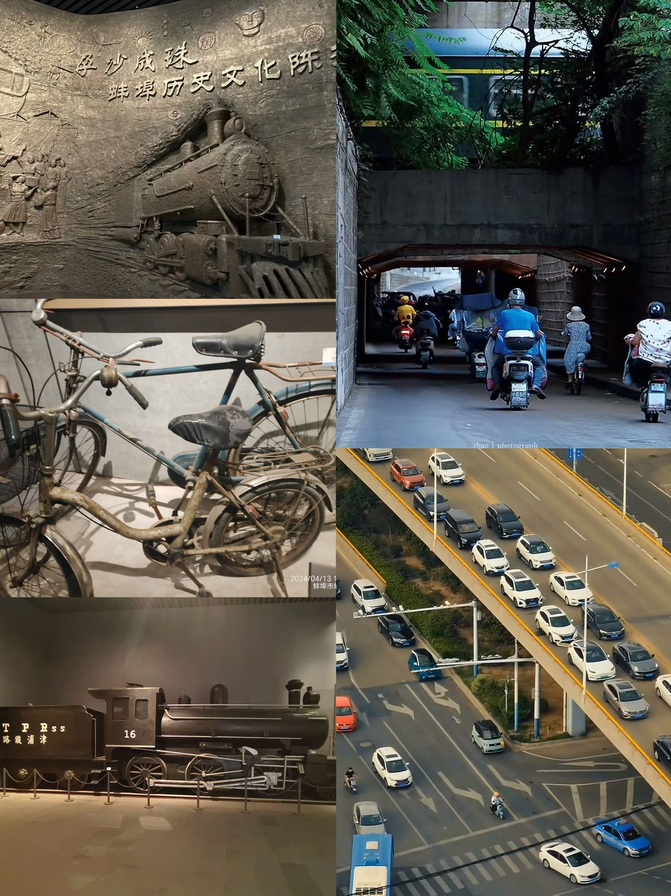 7月9日,实践团走访蚌埠市博物馆、淮河文化广场等站点,探寻“行”的变迁:在博物馆 “铁路区域”,追溯从木帆船到机械化运输的发展历程,细致学习、记录并拍摄铁路变迁的珍贵素材;走进淮河文化广场,“小火车建筑点” 的时代印记与周边车水马龙的现实场景形成鲜明对比,让成员们深切感慨城市发展的迅猛与变迁的巨大。
