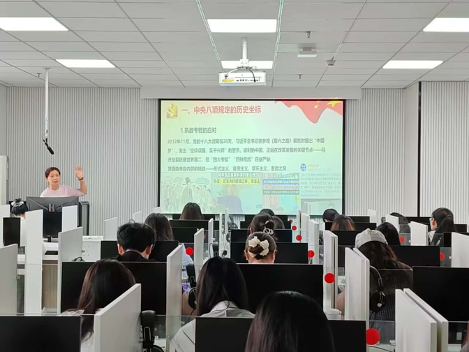 上午9时,专题党课正式开始。耿娟以《青春向党:以“八项规定”之尺 量新时代青年担当》为题,从理论、实践、成长三个维度展开讲解。她深入阐释了中央八项规定的政治内涵,指出八项规定不仅是党风廉政建设的重要抓手,更是新时代社会发展的重要保障。它不仅塑造了风清气正的党风政风,还带动了整个社会风气的的向上向善,这与青年一代的成长、国家的发展息息相关。青年大学生是国家的未来,而学生党员更是其中的先锋力量,从大学生成长为党员,不仅是身份的转变,更是责任与担当的升华。每一位党员都应将八项规定的精神内化于心、外化于行。