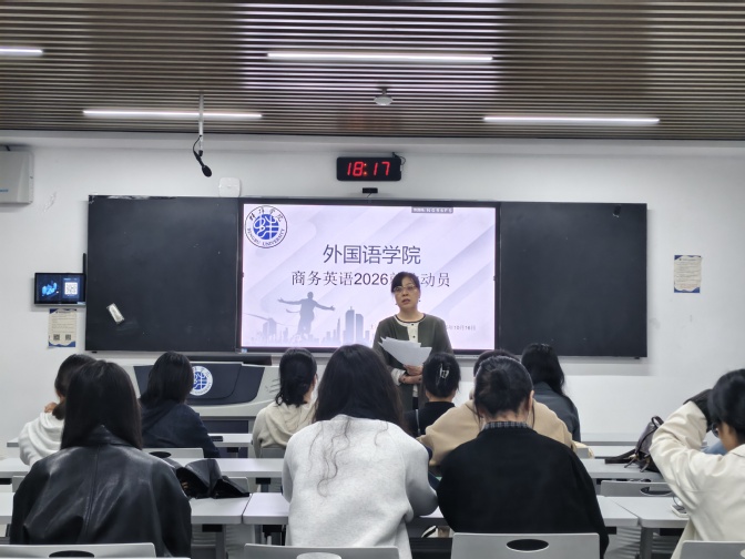 围绕就业行动落实,周颖提出三点期望:以主动就业践行感恩,做求职先行者,深耕外贸行业岗位需求,聚焦跨境电商运营、外贸业务员等方向,将外语功底转化为职场竞争力;以经验分享传递温暖,做同学互助者,主动整理求职资料,分享求职经验;以实干担当彰显价值,做心态引领者,直面挑战,保持积极,展现外院学子风貌。最后,周颖勉励全体同学铭记国家与学校的培养,以主动之姿闯好就业关,用英语专长赋能企业,助力国家对外开放大局,让青春在服务国家需求的征程中绽放光彩。